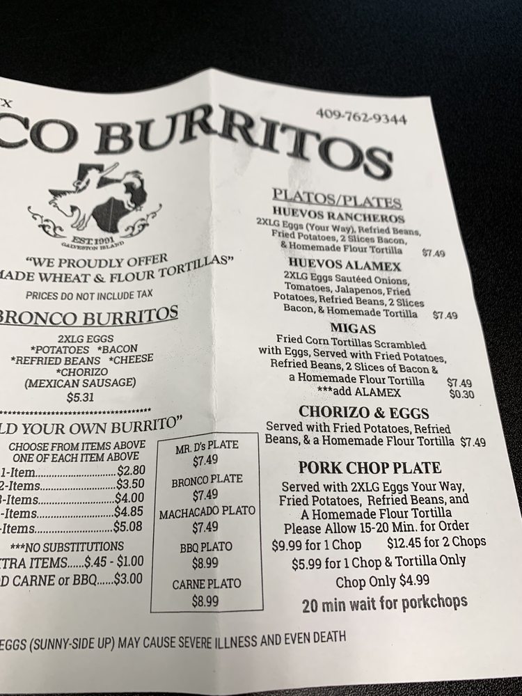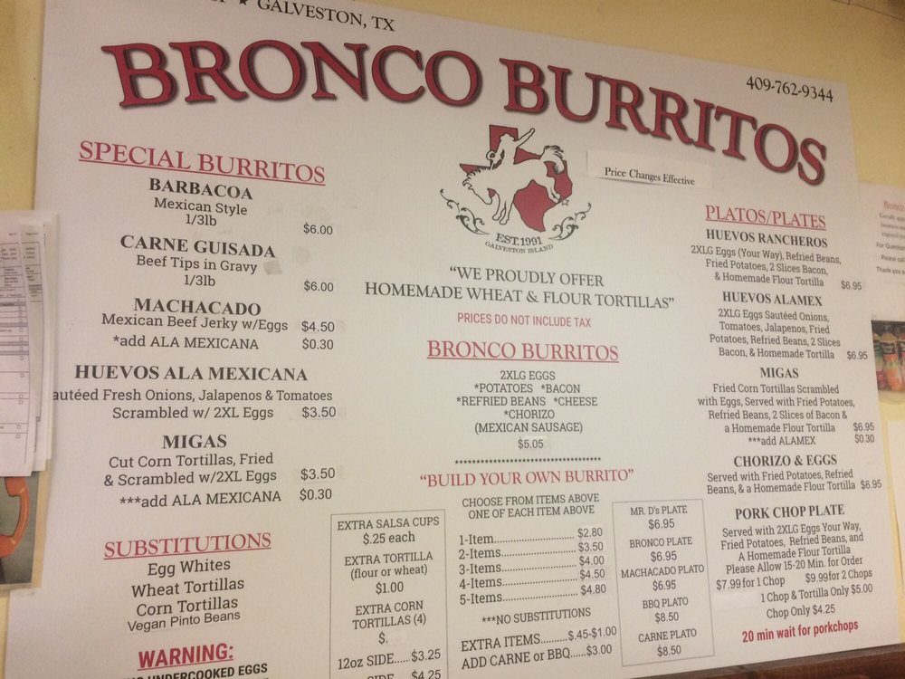 Bronco Burritos Menu